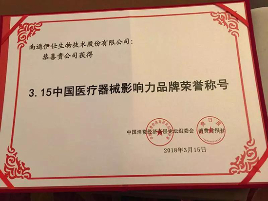 伊仕生物憑借深耕醫(yī)療器械行業(yè)體外診斷試劑多年的影響力,出席了本次會議,并榮獲了“3.15中國醫(yī)療器械影響力品牌”稱號。